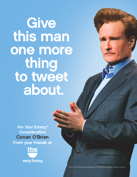 Since NBC no longer has an interest in Conan, TBS has bought Emmy ads for his Tonight Show run. The networks usually take out ads to get their shows nominated, and with NBC's severed ties with Conan, it's not surprising that they wouldn't buy ads for his show.