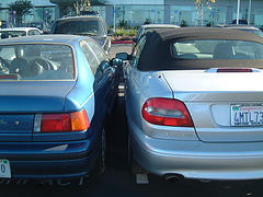 There's something about a parking lot that seems to render 20-30% of people completely inept. For these people, lines on the ground are nothing more than suggestions (maybe they appear squiggly to them?), compact spaces apply to anything smaller than a 747 - including Hummers and Escalades, and parking so that your neighbors have about an inch of space to squeeze into their cars is perfectly acceptable.