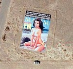 To celebrate its 100th issue, Maxim magazine has slapped a 75 foot by 110 foot magazine cover of Desperate Housewives' Eva Longoria on mesh, and spread it out in the Las Vegas desert. The two dimensional sanctuary is so big it can be seen from the very black of space. It took nine workers 15 hours to build, and can actually be seen on Google Earth.