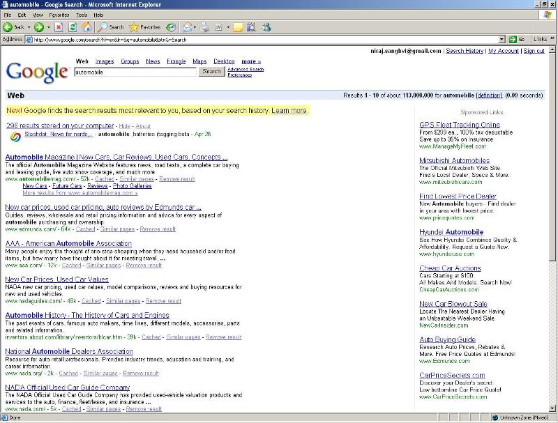 First I decided to check this new concept-understanding. I ran a search for "automobile." As you would expect, Google and Ask yielded fairly similar results. But Kelley Blue Book, an excellent resource for car buying, appeared as the second result on Ask, while it did not even appear on Google's first page of results, probably because it does not contain the term "automobile" but rather "car.":