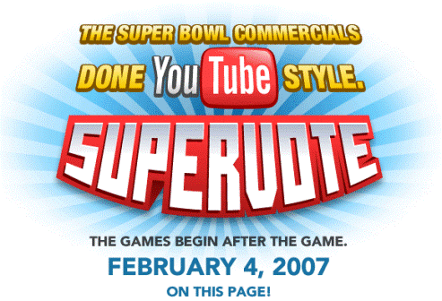 We are hosting every single commercial appearing in the Super Bowl on YouTube. You can watch them, share them, and coolest of all, you can rate them. So everyone can help choose the best spots, and they'll be available on YouTube right after the game. We’ll be linking to the Super Bowl Wrap Up from the front page of Google. Marketers are going to get a huge audience spending more time with their shiny new creative, and the viewers can watch as often as they'd like.