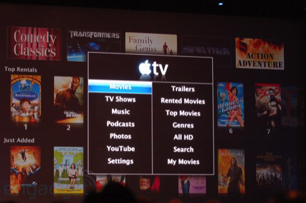 Finally, an announcement that I was impressed with! The new version of Apple TV now does not require a computer connection as the first version did. And they lowered the price from $299 to $229. Combining this with the movie rentals news, they should be pushing a lot of these out the door. And it will still sync with other Macs for music, pictures, etc., as well as some new features like Flickr integration. And yes, existing Apple TV owners get the upgrade free.