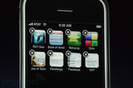 They first unveiled some new features for iPhones (I still don't know how 4 million people plopped down $400 + the cost of a 2-year AT&T contract for that thing) like mapping with location determined by cell towers and WiFi hotspots. Also there's now 9 customizable homescreens. But iPod Touch owners get to upgrade and get 5 new apps: mail, maps, stocks, notes, and weather for another $20! Seriously? They had to charge more for that? Lame.