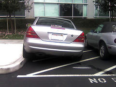 This rant is inspired by a violation I received yesterday while parked in the company parking lot. Apparently, they don't like when you're parked opposite to the flow of traffic in the one-way aisles with diagonal spaces. Even though it was because I was the first one to park in the further lot and it was empty, and I just pulled ahead to the next space since I was the first car in the row and therefore had an easy exit later. I didn't get in anybody's way or obstruct the aisle.Here's some images from the fantastic Y can't park - a Flickr site whose purpose is to document the worst parking offenders in the Yahoo employee parking lot.