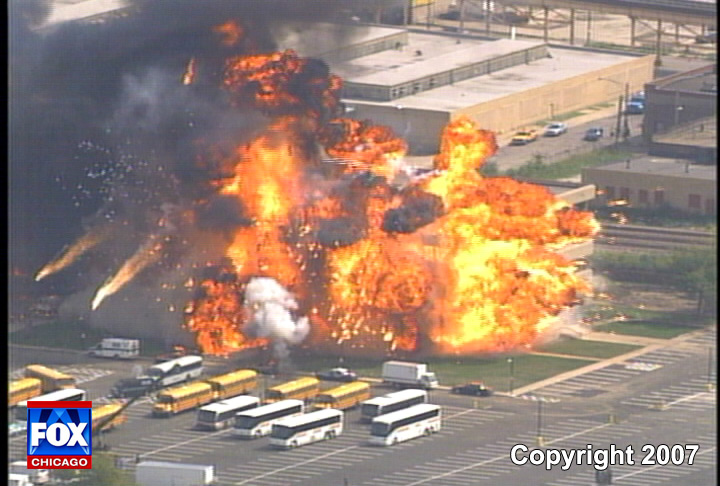 Fox Chicago caught some sweet footage of filming for Batman. Specifically, an old Brach's Candy factory was blown up as part of the shoot. I'm omitting some further spoilers about what the building was made to look like, but if you click through to the article you can read the details. Below are before and after pictures of the building. Mouseover the block to show the images.