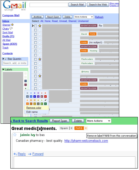 Now you can find boxes next to the labels in the left side (see the picture below) that let you select from a list of background and text colors so you can make different labels stand out better than the previous green text that was the same for all labels.