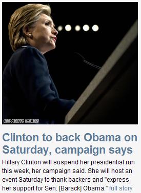 Of course, she's only "suspending" her campaign, which means she still keeps her delegates. We'll see if that has any additional implications, though I seriously doubt that she'd be a VP option. But uniting her supporters with Obama will be a big deal.