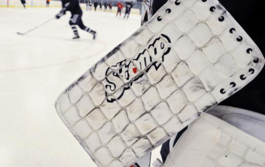 "When the shooter comes down and only has a split second to shoot the puck, they're looking for net," said Leahy, a senior from Hampton, N.H., who grew up in Byfield. "If you put the net on the pad, they'll shoot at the pad instead of the goal."